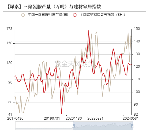 三聚氰胺和脲醛树脂的需求与房地产业高度相关,当前房屋新开工面积仍不理想,全国建材家居景气指数开始重新走低,因此2024年国内需求增幅仍较有限。