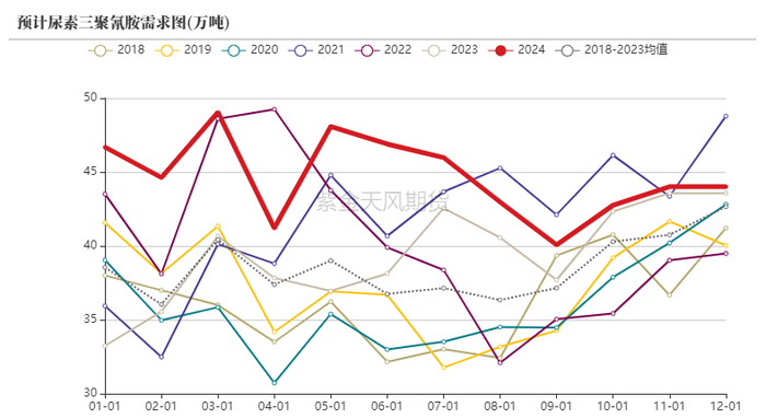 预计2024年,三聚氰胺对尿素的需求将小幅增长13.5%。