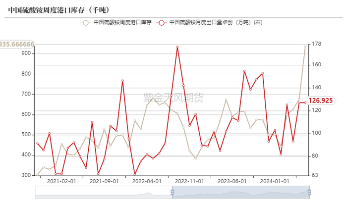 2024年上半年,尿素出口利润一直维持较低的位置,叠加较为严格的法检政策,出口数量大幅度减少;3月以来,随着国内价格的走低,出口利润有所恢复,市场也一度传言出口政策或将有所松动,后续出口数量是否增长需要密切关注出口政策的调整。