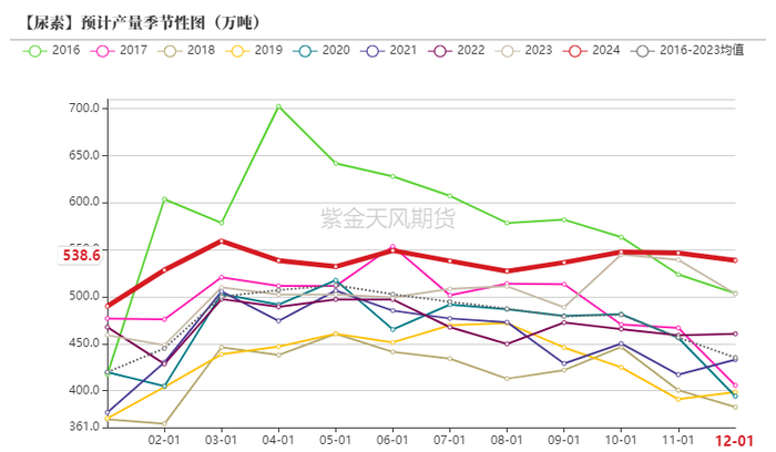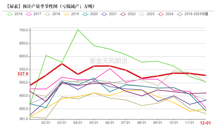 1.尿素产能陆续投放,生产利润较好令开工率一直维持较高,但检修量偏多,最终较预期的高产量有所偏低。