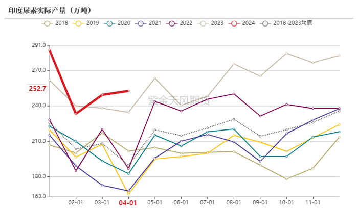 为减少对进口尿素依赖,印度近年加大对尿素企业的投入,预计2024年将新增尿素产能127万吨。