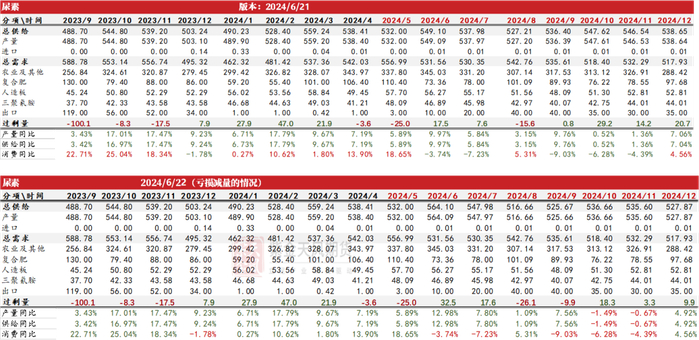当前尿素现货价格较前两年已经出现明显下跌,如果后续煤价出现上涨,则有可能将导致部分高成本的尿素企业触及成本线,高开率存在一定的下行预期,若2024年6月份之后的开工率下滑2%,则全年尿素产量增幅将由正常开工率条件下的6.8%下滑至4.6%。