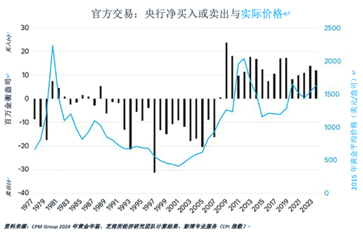 2009年以来央行购买黄金的情况与其在1982年至2007年期间成为净卖家的趋势形成了鲜明对比。央行积累黄金的举动表明,其希望拥有硬资产来补充美元、欧元、日元和其他法定货币的外汇储备,并且这一观点似乎因2009年以来的间歇性量化宽松政策以及金融制裁措施的使用增多而得到进一步强化。央行的购买会直接影响黄金价格,而对白银价格的提振效应则是通过黄金市场间接产生。