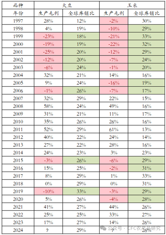 图:对比美国大豆,玉米种植毛利与全球库销比的对应关系