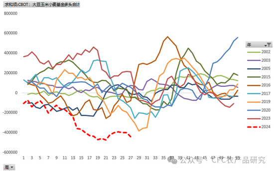 图:CBOT市场主要农产品非商业净多持仓跟踪(季节性主要引用大供应的年份)