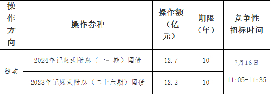 2024年7月19日起与同期国债合并上市交易。中标参与机构不迟于2024年7月17日,将随卖操作款缴入财政部指定资金账户,缴款日期以财政部指定账户收到款项为准。