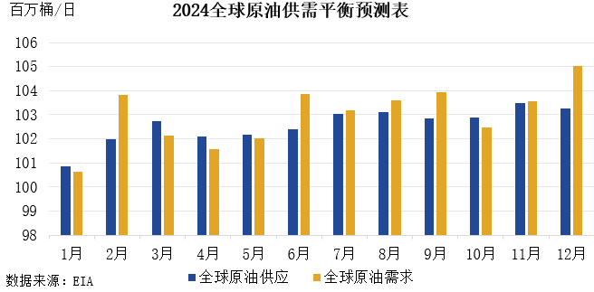 从供应来看,一方面,受全球石油需求的增加、地缘政治紧张局势以及OPEC+的产量减少等因素影响,2024年全球石油供应可能会出现小幅短缺。特别是在3月期间,OPEC+进一步延长了额外减产的持续时间,这对油价形成了有利支撑。但另一方面,以美国为首的非OPEC产油国原油产量增加稀释了OPEC+减产的影响。需求端方面,上半年多数时间,全球通胀仍难以缓解,投资者对能源需求的担忧始终存在,但此后,随着市场进入夏季需求旺季,市场对能源需求前景的预期逐渐乐观。