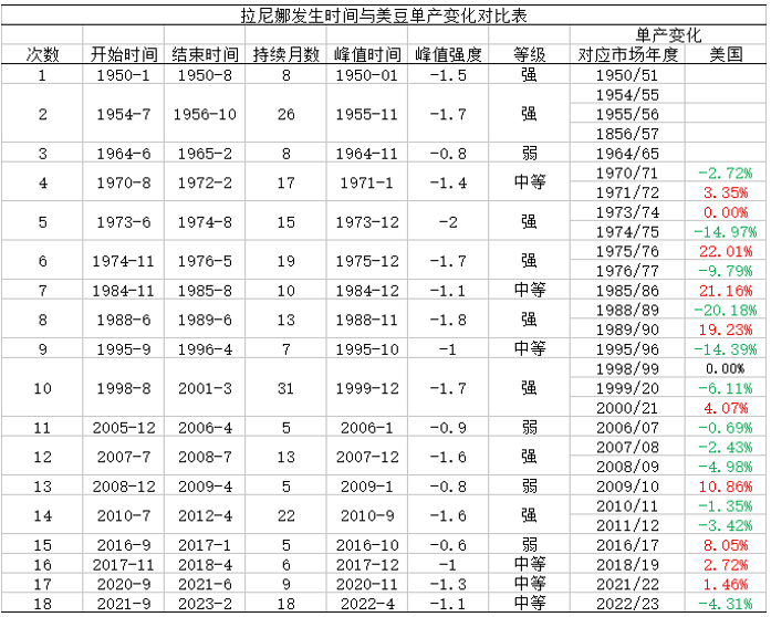 因此就大豆而言,拉尼娜对南美大豆,尤其是阿根廷大豆单产的影响要大于北美。按照CPC预计,今年拉尼娜事件大概率出现在8月至10月份,2000年以来,只有2016年和2020年的拉尼娜事件始于9月份,与今年情况较为类似,这两个年份的美豆最终单产均增加,因此从气候和历史的角度来看,美豆单产有较大的概率增加。