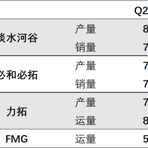 四大矿山二季度整体产销表现较强,其中淡水河谷和力拓维持全年指导目标不变,必和必拓和FMG在暂时缺少新增产能的情况下,新财年的指导目标制定的相对谨慎,不过基于已有项目在稳步推进,我们认为仍能释放一定增量。整体来看,我们认为三季度四大矿山发运将继续增长。
