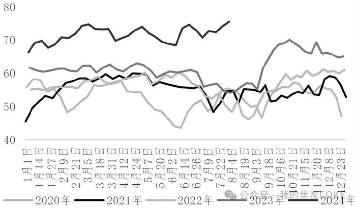 虽然纯碱产能在持续增加,但按照季节性规律,7—8月是纯碱企业检修的高峰时段,行业开工率、产量通常会呈现明显下降趋势,但今年纯碱供应变化趋势出现“反季节性”。由于不少纯碱企业在4—6月已经进行了年度检修,明显稀释了7月的检修力度,整个7月纯碱行业生产水平维持高位波动,甚至不降反增。再叠加产能增量、装置故障偏少等因素,纯碱供应压力持续提升。截至7月末,纯碱行业开工率90.63%,较6月末提升3.09个百分点,较去年同期提升11.21个百分点;纯碱周产量75.56万吨,较6月末提升3.55%,但同比提升幅度高达39.64%。纯碱行业开工率及产量不仅连续数周走高,且当前已处于近5年的最高位,季节性支撑预期不断落空,纯碱市场承压。