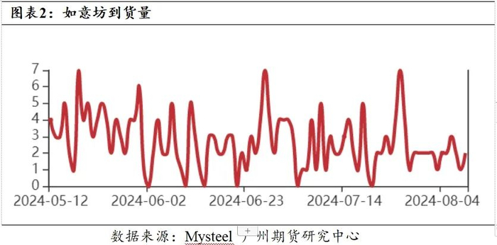 红枣减产结果落地之前就大涨的价格是库存偏低但价格却走弱的主要原因。供应的弱势已在红枣下树前提前通过价格反馈,而高价导致的消费减少预期在之后慢慢开始主导市场。2024年2月,广东如意坊的红枣到货量仅为46车,较22年的111车和142车锐减。接下来的3个月内到货量较前两年也有显著减少。6、7月时到货量略有好转,和2023年时同期相差不远,红枣价格也经历了一波短暂的反弹。8月时到货量再次减少。根据钢联数据,8月份截至8月9日,如意坊到货量仅为17车,预估全月到货量不足70车,再度大幅低于过往数年同期。消费预期转弱。