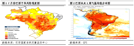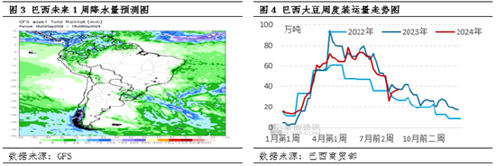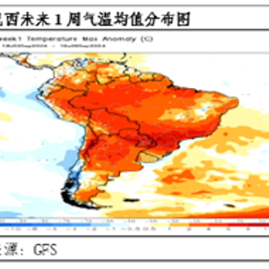 根据巴西国家自然灾害监测中心的报告显示,7月份的干旱主要集中在亚马逊州、马托格罗索州、圣保罗州。报告中提及,相比于2023年10月给出的3.175亿吨粮食产量预估值,今年8月的第十一次调整值2.986亿吨,减少了5.9%。从GFS模型给出的未来1周气温均值预测看,巴西整体的高温较为明显,干旱的预期可能在9月份持续强化。因此从气候的现状以及预期看,该因素对于巴西大豆产量预估来说同样形成估值下调的压力。