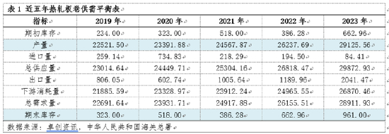 就近五年热轧板卷供需局面来看,供应与需求均保持增加趋势,但就期末库存变化趋势可以看出,需求增速逐步慢于供应增速,从而市场供需关系逐步由供需对等逐步向供过于求转变。