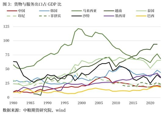 以外贸(不是净出口)占GDP比例看,25%可能是一个是否受制于外需的分水岭。例如印度自成体系;中国在2000-2010年占比高于30%时,当年对次贷危机的恐惧感,现在以我为主的定力也就合乎情理;东南亚除了印尼和菲律宾,泰国、越南、马来西亚三大经济体深度捆绑外需,因而也就解释了东南亚整体与欧美兴衰深度捆绑;韩国、墨西哥同理。