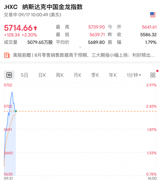行情方面,昨晚美股三大指数集体高开,中概股全线大涨,纳斯达克中国金龙指数一度大涨近3%,理想汽车最高暴涨超9%,小鹏汽车、好未来大涨超5%,哔哩哔哩、蔚来涨超4%,京东、百度、贝壳、新东方涨超2%,阿里巴巴、拼多多、网易、腾讯音乐涨超1%。