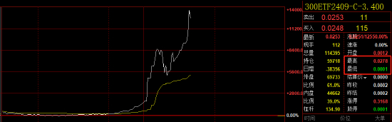 另外值得注意的是,上交所、深交所股指期权9月合约,到期日为9月25日,因此今日夸张的涨幅可以算是“末日轮”效应。业内人士表示,由于临近到期日,投资者需冷静看待,切莫盲目追涨深度虚值期权。