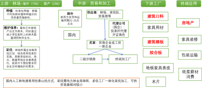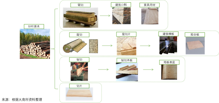 家具:主要是做成指接材,即加工过程中的余废料拼接而成的板材,供全屋定制工厂做板式家具的基材,如衣柜、橱柜等,在实木家具领域虽仍是以阔叶树材为主,但针叶树材的价格优势使得其成为有力竞争材种。