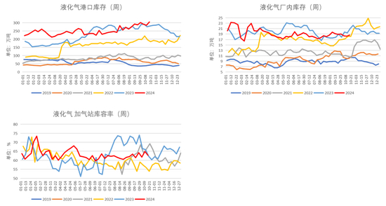 中国液化气厂内库存为18.65万吨,较前一周+0.42万吨,处于往年同期高位。
