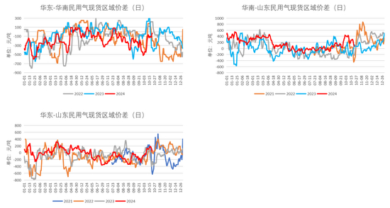 华东民用气对12基差344元/吨,较前一周+135元/吨;华南民用气对12基差374元/吨,较前一周+35元/吨;山东民用气对12基差304元/吨,较前一周+235元/吨。