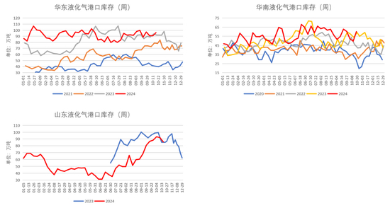截至10月18日,华东液化气港口库存为95.94万吨,较前一周+5.34万吨,略高于往年同期。