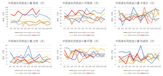 国内液化丙烷进口量分国家