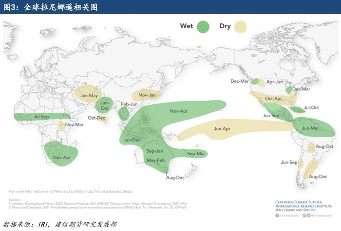 据世界气象组织(WMO)通报,2024年9月至11月从中性状态(既非厄尔尼诺也非拉尼娜)转变为拉尼娜状态的概率为55%;而2024年10月至2025年2月这种可能性会增加至60%。厄尔尼诺和拉尼娜是赤道中、东太平洋海温冷暖交替变化的异常表现,这种海温的冷暖变化过程构成一种循环,拉尼娜现象常与厄尔尼诺现象交替出现,但发生频率要比厄尔尼诺现象低。在继厄尔尼诺事件梳理之后,本文将通过对历史上不同强度的拉尼娜事件的回顾,总结出在每次事件发生的前中后期全球各主要棉花生产国相应产量的变化情况。