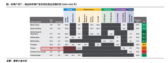 从历史数据来看,林业收益率和通胀率正相关,且相关性强度高于美债收益率和标普500指数等,因此林业在作为对冲通胀的资产配置方面优于大多数资产。