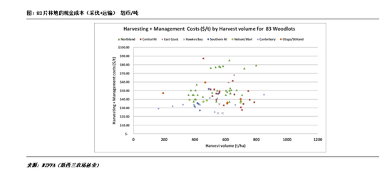 首先,新西兰的林业成本大致可以分为两个维度:现金成本和可持续种植现金成本。