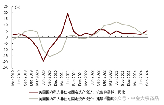 图表:美国建筑投资增速回落,但设备投资开启增长