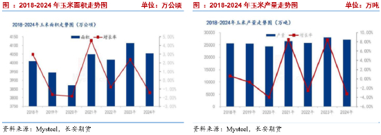 国内玉米进入收获尾声,产量基本落定。由于天气原因的导致国内玉米平均单产有所降低,而国内主要种植带种植面积也存在下调幅度,引导国内玉米减产为主。各机构产量预估也逐步出炉,其中钢联农产品调研团队预计2024年玉米产量2.71亿吨,较2023年减少901万吨,下降幅度3.21%。中国汇易网预估新季玉米产量为2.8亿吨,同比下降2.6%。综合各机构的数据来看,由于全国主要玉米种植带种植面积基本呈现下降趋势,产量预估不及前期,整体呈现收敛态势。
