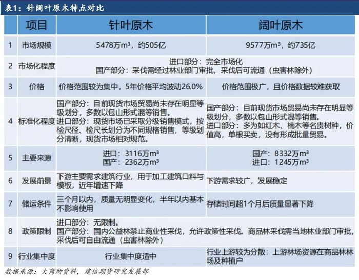 基于针叶原木价格波动区间较小、标准化程度更高、储运条件更为宽泛、下游行业需求较为集中,原木期货合约标的物及替代品均为针叶原木。
