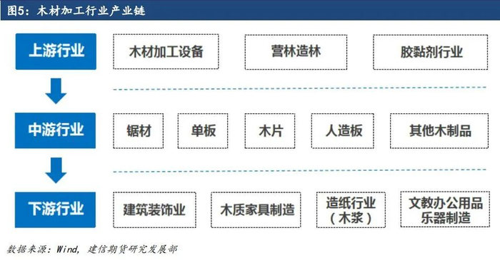 下游行业是木材加工行业的需求方,它的发展对木材加工行业直接产生影响。下游行业主要包括建筑装饰业、木制家具制造业、造纸行业(木浆)、文教办公用品行业和乐器制造行业等。