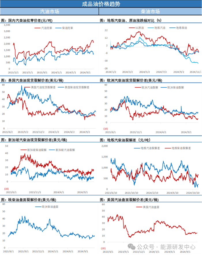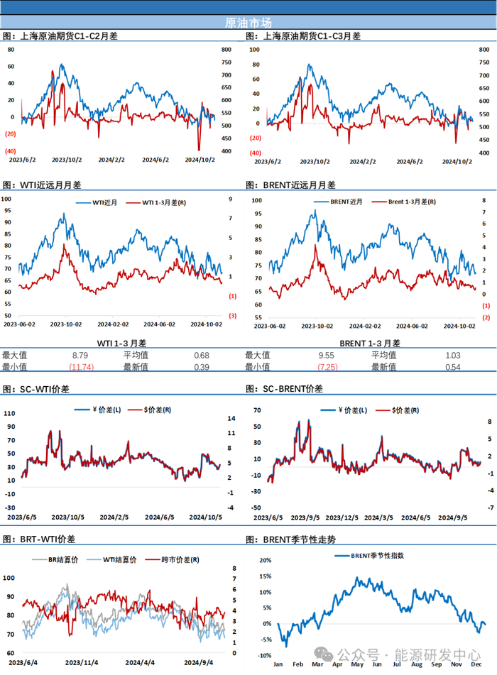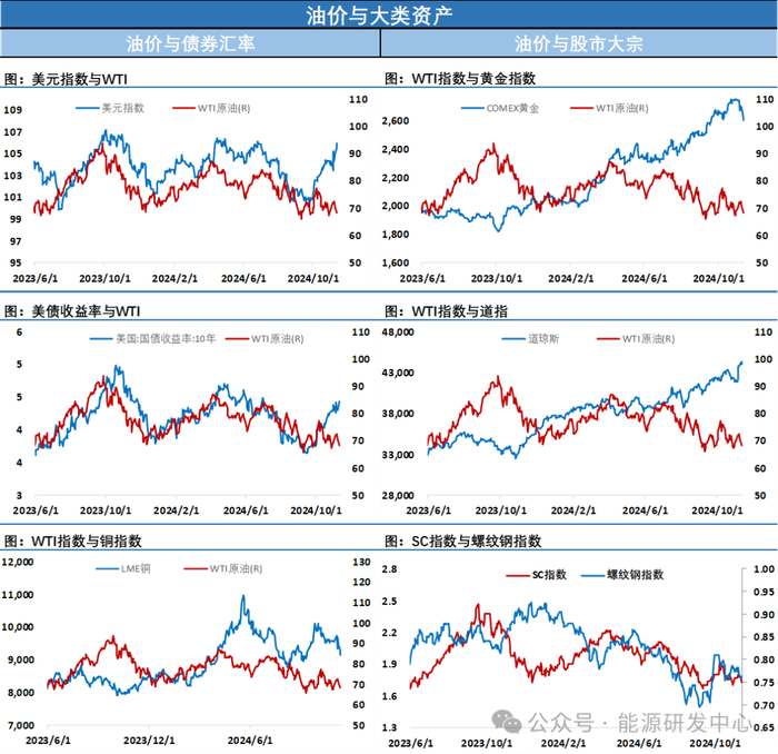 欧佩克+减产周期内构建的长期区间底部支撑变得越来越弱,在11月初欧佩克+早早做出再延长减产一个月到今年年底的决定之后,短期内已经很难再有提振市场信心的举措,另外地缘层面对供应端扰动的风险也在下降,以色列称特朗普胜选之后伊朗已经放弃了对以色列的报复性,地缘层面温明显,原油市场供需层面也缺乏亮点提振市场,油价反弹能量明显不足,阻止油价下行的因素越来越少。不过昨晚油价的走势可以看出,在油价再次触及欧佩克+减产底低点之后,还是有资金选择了离场观望,这也意味着虽然长期区间低位的支撑力度在逐步减弱,但市场暂时还没有形成破位下行共识,高频指标近期也有小幅回稳,市场仍需要时间来做选择,注意节奏把握,谨慎参与。