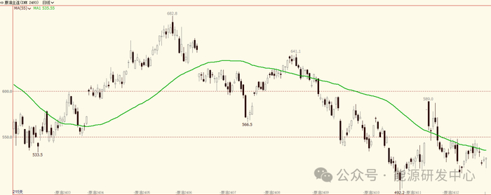 周三油价收星线,盘中再次大幅震荡,夜盘一度下行刷新本周低点有破位之势,随后市场又从低位反弹收复日内失地,最终收出长针星线,延续了低位震荡格局。