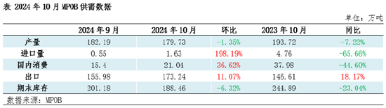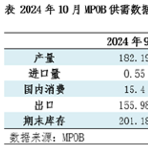 【导语】11月11日马来西亚棕榈油局(MPOB)公布10月棕榈油供需数据,10月马棕供弱需强,月末库存低于市场预期,报告影响利多。11月份预计马棕维持季节性减产,但同时出口需求存在下滑预期,预计11月末库存或维持降库趋势,供需端支撑力度仍存,利多价格。