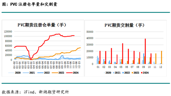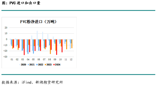 2023年疫情管控措施调整,PVC生产受产业外因素影响较小,且电石价格持续走弱并维持低位,烧碱价格保持较高水平,令2023年PVC利润和氯碱一体化利润均维持较高水平,PVC生产企业开工率能够基本维持,产量提升,而受印度需求增加的影响,2023年净出口量191万吨,较上年增加约30万吨,产量的提升令表观消费量增加,表观消费量2101.74万吨,表需累计同比3.12%。