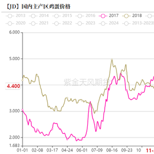 • 进入7月,逐步进入需求旺季,因上半年市场淘鸡节奏较强,加上在此期间 7、8 月份高温酷暑天气下,蛋鸡高温应激反应明显,产蛋率大幅下降,市场供需逐步进入偏紧节奏,现货价格快速反弹,8月中旬触及5元关口,在阶段性回调后,9月初再度反弹,但并未达到5元关口,随后开始震荡下跌,至9月底跌破3.5元关口。在此期间,期货1808合约大幅反弹,高位触及5000关口,但9月合约波动幅度较小,高点并未达到4500关口,交割月跟随现货波动。这个需求旺季周期,主要是冷库贸易商炒作情绪比较强烈,因此现货价格高点提前到来。