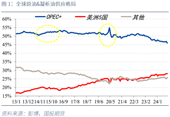 在此背景下,面临疲弱的原油价格及悲观的需求展望,OPEC+会更加关注对市场份额的争夺还是对油价的托底便显得至关重要。从历史复盘来看,我们认为OPEC+在2025年拍案而起背弃减产协议的可能性较低。历史上发生过2次OPEC+主动增产保份额的情形,一次是2014年面对北美非常规能源的突然崛起,一次是2020年新冠疫情导致全球需求的骤然崩塌。不难发现,OPEC+采取增产抢份额非常规策略的先决条件是外部环境的突然、巨大变化,但就当下而言,疫情以来美洲原油及凝析油的产量增速已明显放缓,资本开支的约束、钻机效率及新井单产的瓶颈令美国页岩油的增产弹性明显下降,最近2年的增产空间均在30万桶/天左右,南美FPSO的上线亦需面对巴西产能利用率偏低的挑战,预计今明两年非美非OPEC+增产幅度均稳定在80万桶/天左右。而需求方面虽面临经济增长降速、交通能源转型的挑战,但相对稳定的低增速与断崖式的需求崩塌亦有本质区别,在此情形下2025年OPEC+主动增产的必要性及风险较低。