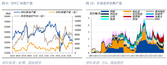 除此之外,尽管从目前表征来看特朗普任期开启后美国将致力于俄乌及中东冲突的和解,但最新OPEC意外供断产能已处“阿拉伯之春”以来的最低水平,美国对伊朗及委内瑞拉的加重制裁仍令供应端存在意外减产风险。而面对潜在的供应风险,尽管OPEC+充裕的剩余闲置潜能意味着其有能力在一个季度左右完成产量损失的弥补,但远期平衡表的偏空压力及核心产油国最大化出口收入的核心诉求或减弱其弥补减供冲击的意愿和力度,最终亦有利于近月油价的相对强势。