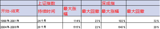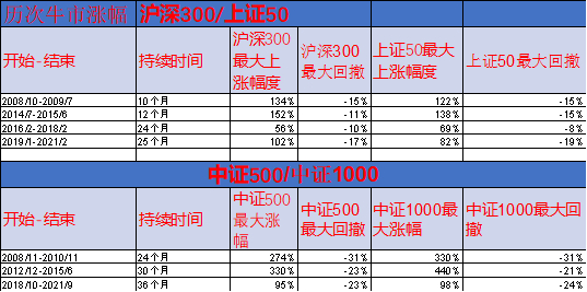 历次牛市最大涨幅与最大回撤