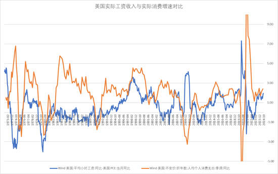 美国经济增长源头来自消费,而消费决定性因素取决于实际工资收入。美国实际工资收入仍然处于高位,短期对经济形成支持。也使得通胀具有韧性。