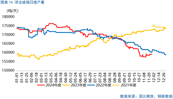步入2025年,虽然浮法玻璃仍有待点火产线,但其落地或将延迟,而行业利润压缩将推动落后产能出清,因此浮法玻璃产量大概率会出现一定程度的下滑,呈现出易减难增的局面。