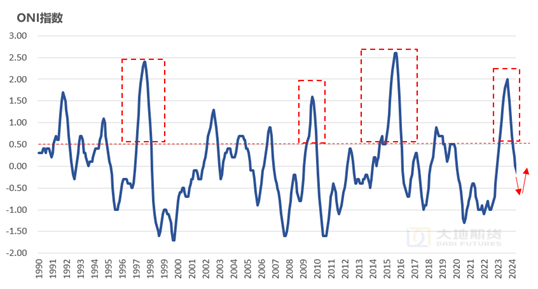 明年问题可能发生在开割期以及四季度。明年天气扰动可能仍然存在。2024年是厄尔尼诺到拉尼娜的特殊年份,其中可以对比1998、2010、2016年,那么2025年就可以对比第二年。观察其第二年的共性:一是开割期3-5月份泰国整体雨水会高于正常值、气温低于正常值,这一点也会影响正常开割。二是拉尼娜现象有可能反复,如1999年、2017年底,导致年底再次出现大规模降雨。