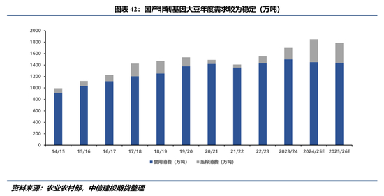 国产大豆的需求端主要由食用消费和压榨需求构成。从整体来看,这两个需求领域在过去多年中呈现出稳定而缓慢的变化,属于典型的慢变量。