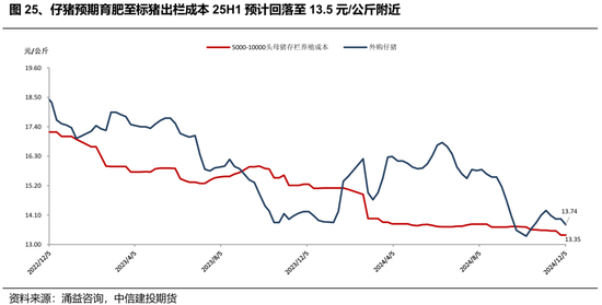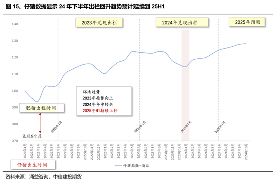 24年按仔猪数据给出的指引,正常出栏节奏对应全年供应低点在6-8月,与现货价格表现相吻合。24年8月份以后对应出栏量恢复的趋势较为明确,机构统计出栏计划可验证该趋势,年内剩余时间再度面临产能恢复压力,四季度再度面临考验。回升趋势预计延续到25H1。