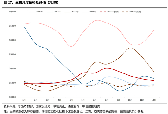 24年高利润窗口期过后,25年或面临养殖利润回归后的低利润阶段。成本端的共振下行周期或还未终结,25年生猪面临成本侧与供给侧的双重压力。25年,受到供给侧持续恢复的影响,现货价格存在向养殖成本回归的驱动,全年预计呈现低利润特征。25年行情波动区间收敛,现货价格预计大部分时间在13-15元/公斤的区间波动,整体价格中枢较24年下移。