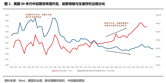 我国生猪产业的发展现状与20世纪90年代美国的情况相近,表现为产能迅速集中于行业领先者。与欧美等生猪产业大国相比,我国每头母猪每年提供的断奶仔猪数(PSY)指标的差距正在逐渐缩小。