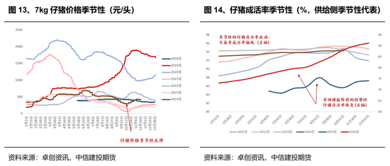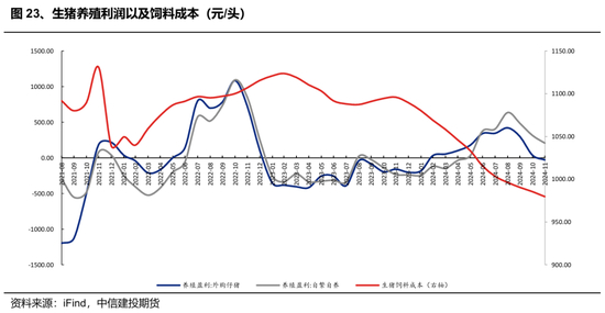 从成本视角看,随着饲料成本的下移,生猪价格的回落是符合市场预期的,但饲料成本对养殖利润的影响并非线性。成本支撑的有效性随时面临供给侧的挑战,例如22年3月-10月,养殖利润和饲料成本的共同上行,以及24年1月-8月二者更符合直觉的背离。历史给我们的启示是,在市场将视角锚定向成本时,仍需要明确供给端的矛盾是否占据主要地位,在供给过剩的情况下,市场不乏跌破成本的驱动。