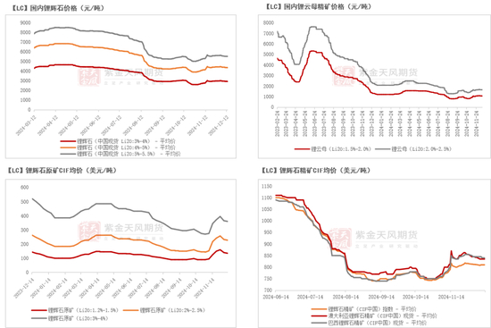 锂矿:原料价格环比下跌