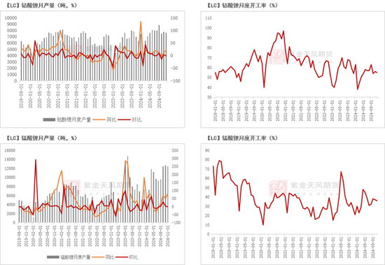 锰酸锂11月产量达12505吨,环比减少155吨、-1%,开工率预计达36%,环比减少1个百分点。